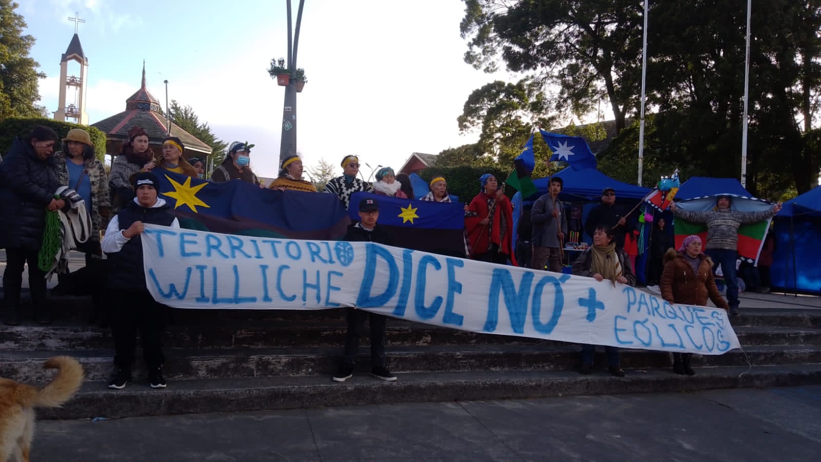 La resistencia social comenzó ante el proyecto eólico que lleva más de una década detenido por la acción comunitaria, y que pretende instalarse en Mar Brava, en una de las playas más grandes de Chiloé, con gran valor ecológico, turístico y arqueológico para las comunidades del sector, recuerda Clementina Lepio Melipichún, Longko de la comunidad Mapuche Williche alto de fundo Gamboa en Castro. “Poco después viene el parque eólico San Pedro en la cordillera del Piuchén, en zona de turberas y bosque nativo, y del cual muchas comunidades que nos abastecemos del agua de esa cordillera no nos enteramos hasta que ya estaba instalándose. Y así se han ido sumando proyectos en territorio indígena y en zonas que afectan al bosque nativo y a nuestras reservas de agua sin dejar ningún beneficio para la comunidad. Los vecinos del parque San Pedro hoy día siguen pagando caro la luz y además están con crisis hídrica, recibiendo el agua por camiones aljibe”, comenta la autoridad ancestral.
