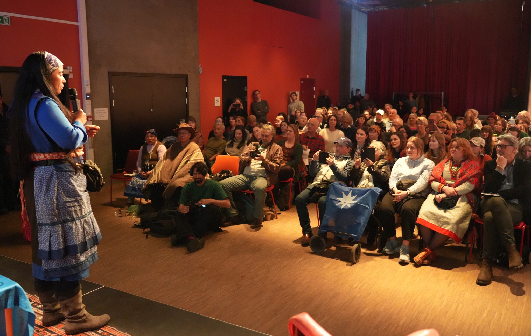 Otra de las actividades se desarrolló ayer martes en uno de los principales cines y centro de reuniones de Oslo, oportunidad en la cual, la machi Millaray Huichalaf y la delegación mapuche explicaron al pueblo noruego por qué exigen que Statkraft se retire de inmediato del río Pilmaiken: