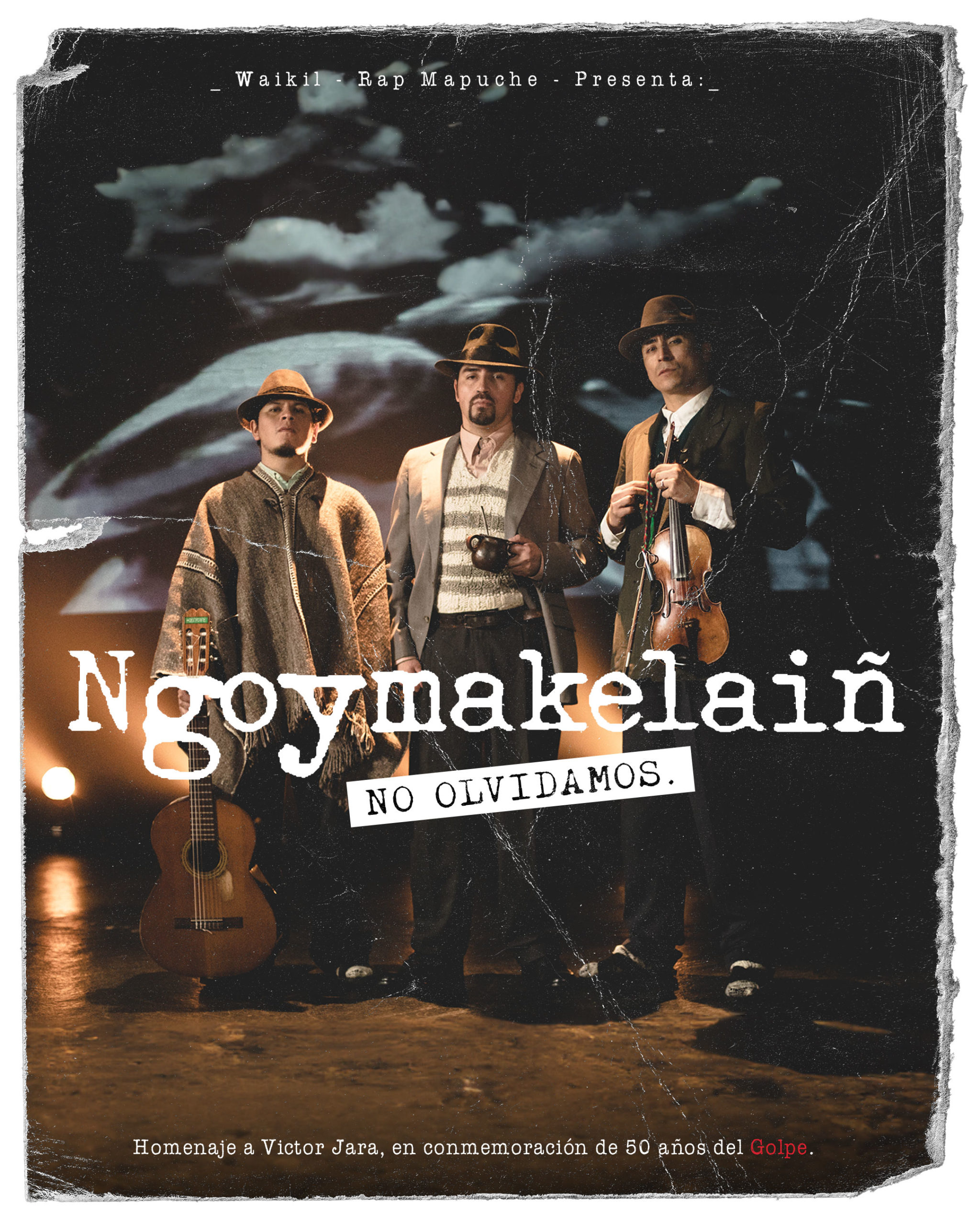 Con motivo de homenajear a Víctor Jara y su música, en los 50 años del golpe, lanzamos en forma colaborativa la pieza audiovisual denominada Ngoymakelaiñ, no olvidamos. Dos canciones reinterpretadas desde la raíz musical mapuche, el rap y el folcklor del campo chileno, Angelita Huenuman y Somos cinco mil.