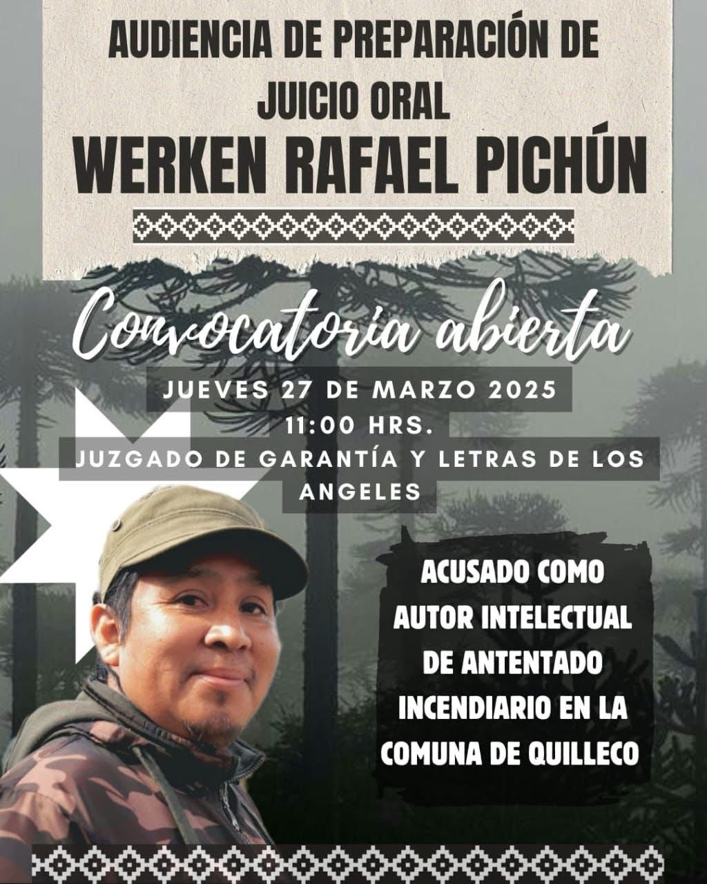 El mismo día, se inicia además la preparación del juicio oral contra el werken de la histórica comunidad de Temu Lemu Rafael Pichún, quien es además vocalista de la banda musical «werkenes del amor», y quien es acusado como autor intelectual de atentado incendiario en Quilleco.