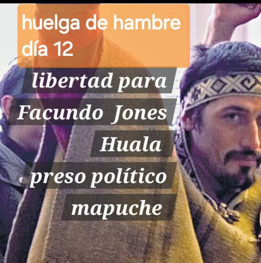 Facundo Jones Huala, quién exige el traslado a la Unidad Penal de Esquel, se encuentra desde hace 12 días en huelga de hambre líquida ante el rechazo de la Dirección de Régimen Correccional del Ministerio de Seguridad de la Nación a su traslado rechazando lo que había dispuesto la Justicia.