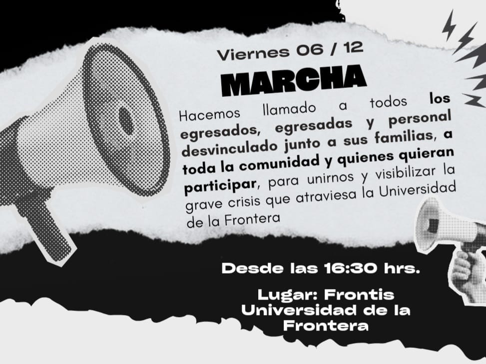 A raíz de la grave crisis de la educación pública en Chile y la crisis financiera de $38 mil millones que vive la Universidad de La Frontera en Temuco, y que el pasado viernes significó el despido de 298 funcionarios/as, distintas organizaciones y estudiantes han manifestado su apoyo, exigiendo la reincorporación de los/as académicos/as afectados/as.